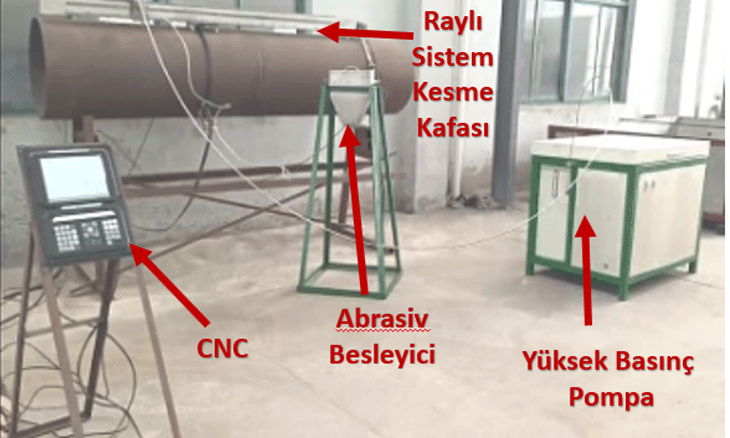 Çoğu zaman, ister yer altında ister havada yüksekte olsun, döşenmiş borularda kesim yapılması gerekir. Bu, kesim ekipmanının iş sahasına getirilmesini gerektirir. Ayrıca borularda akan malzemeler alevli veya patlayıcı olduğundan su jeti sıklıkla tercih edilen kesme yöntemidir.